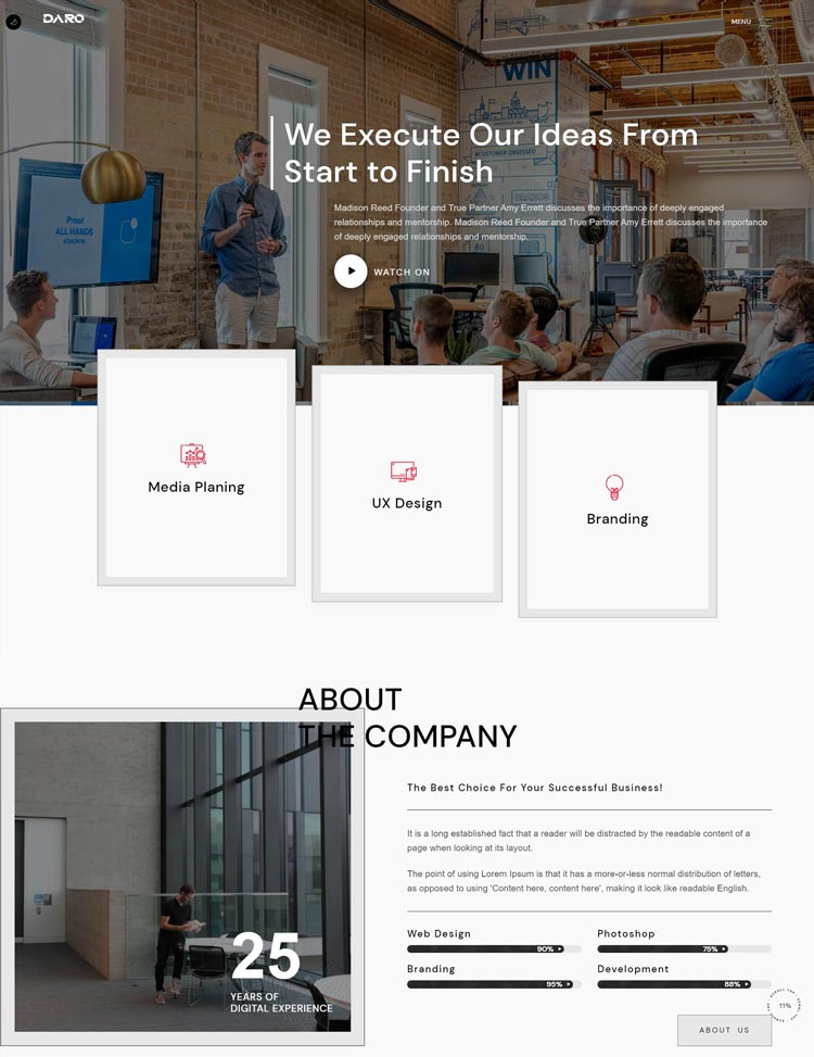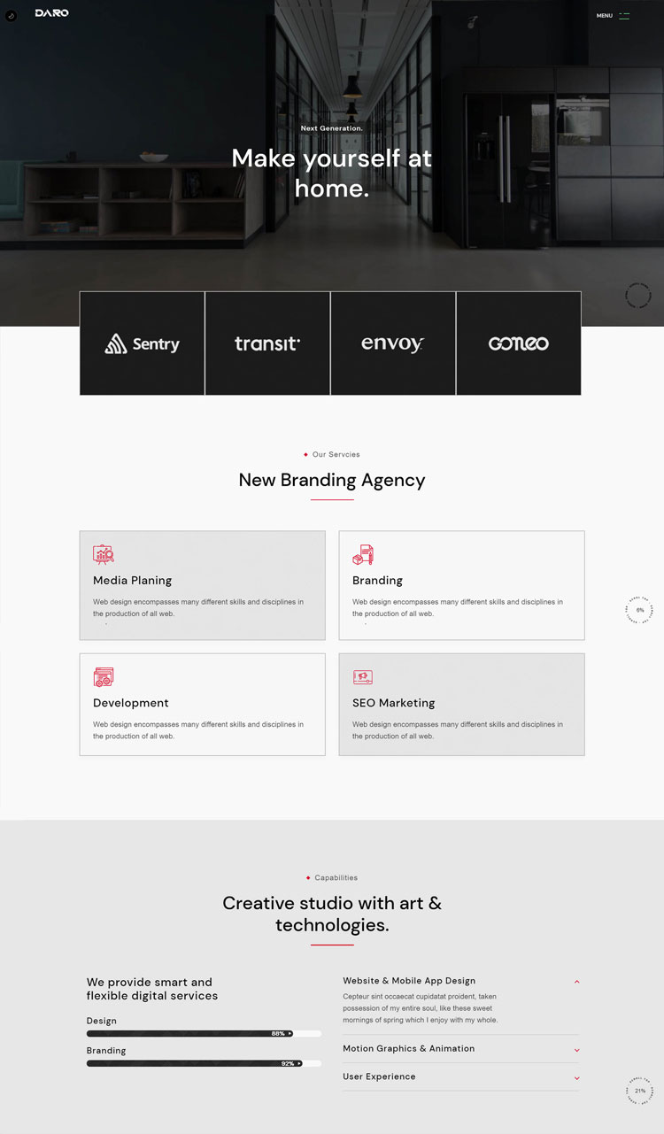 Daro is a new portfolio concept for creative agencies and freelancers. Graphic designers, illustrators, photographers or any kind of creative is now able to create a quick and easy